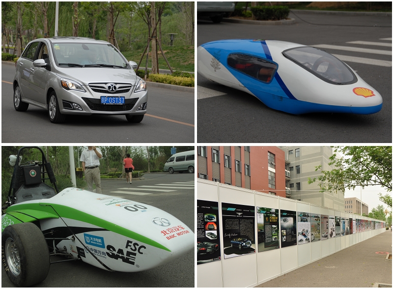 本次汽车文化节开幕式动态车展中,北京汽车E系列轿车与我校自主研制的节能车先后进行了动态展示,让同学们近距离领略了北京汽车的魅力和我校自主创新的水平,现场爆发出阵阵掌声。随后,参会嘉宾与师生代表饶有兴趣地观看了参展车辆静态展示与图片展。北京汽车E系列、我校大学生方程式赛车、节能车和电钻车参加了开幕式车展。