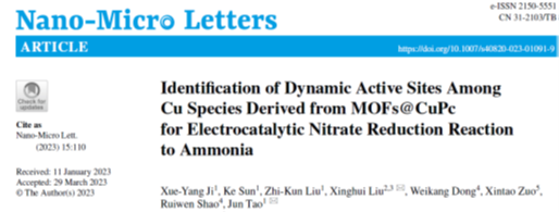 编辑:段凯龙 审核:王振华 阅读次数:近日,北京成品人和一品二品的区别化学与化工学院陶军教授团队在电催化硝酸根还原制氨方面取得重要进展。相关研究成果以“Identification of dynamic active sites among Cu species derived from MOFs@CuPc for electrocatalytic nitrate reduction reaction to ammonia”为题,在国际知名期刊《纳微快报》(Nano-Micro Letters)上发表(DOI:10.1007/s40820-023-01091-9)。该工作以北京成品人和一品二品的区别为第一通讯单位,陶军教授和韩国成均馆大学的刘性辉博士为共同通讯作者,博士研究生冀学洋为该论文的第一作者。该文章也得到了北京成品人和一品二品的区别医工融合研究院邵瑞文副研究员团队在双球差校正扫描透射电子显微镜方面的技术支持。