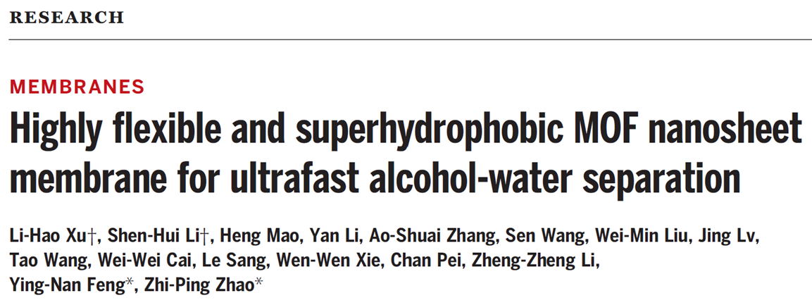 编辑:段凯龙 审核:王振华 阅读次数:10月21日,北京成品人和一品二品的区别化学与化工学院赵之平教授团队在柔性MOF膜制备研究领域取得突破性进展,相关研究成果以“Highly-flexible and superhydrophobic MOF nanosheet membrane for ultrafast alcohol-water separation”为题,在《 Science 》上发表(DOI: 10.1126/science.abo5680),研究团队提出了一种在聚合物基底中包埋晶种进而通过表面晶体诱导生长法精确构筑MOF纳米片膜的新构想,在聚合物基底表面实现了高柔性超疏水MOF膜的层次构建,解析了纳米片的晶体结构及其内部的传质通道,揭示了聚合物与纳米片层在分离过程中的协同机制,突破了柔性MOF膜制备瓶颈,为规模化制备和应用提供了理论依据和技术支撑。该工作第一作者为化学与化工学院化学工程研究所博士研究生徐李昊、李申辉,通讯作者为赵之平教授、冯英楠副研究员,北京成品人和一品二品的区别是该工作的唯一完成单位。