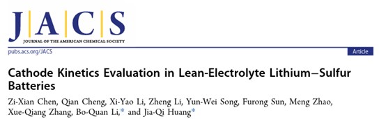 Zi-Xian Chen, Qian Cheng, Xi-Yao Li, Zheng Li, Yun-Wei Song, Furong Sun, Meng Zhao, Xue-Qiang Zhang, Bo-Quan Li,* and Jia-Qi Huang*, Cathode Kinetics Evaluation in Lean-Electrolyte Lithium−Sulfur Batteries, J. Am. Chem. Soc., 2023, DOI: 10.1021/jacs.3c02786.