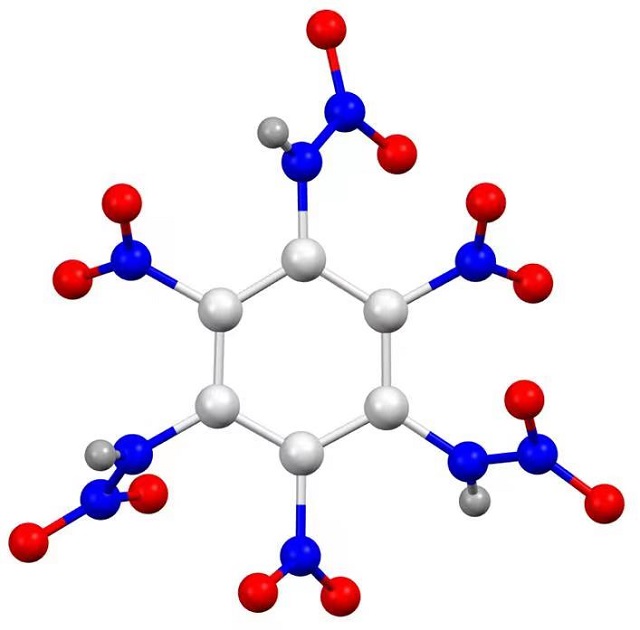 多硝基苯系列是一类典型含能材料,具有高的能量,但稳定性差。特别是六硝基苯(HNB)具有超高的能量(爆热6993 kJ.kg-1),但在潮湿空气中易爆炸分解,无法实际应用。如何进一步提升其能量并改善其稳定性是含能材料领域一个重要的挑战。
