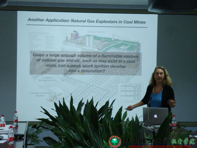 编辑:机电学院 王雪慧 阅读次数: 2014年4月3日-4日,应安全与防护协同创新中心和爆炸科学与技术国家重点实验室的邀请,国际著名爆轰专家、美国工程院院士、马里兰大学Elaine S. Oran教授来实验室进行学术交流与访问,在此期间先后做了题为“Turbulence and Energetic Reactive Flows”和“Effects of Turbulence, Scale on Flame Acceleration, Detonations, and DDT: Experiments at Lake Lynn Laboratories”的精彩学术报告。