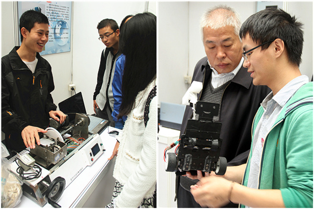 科技创新宣传周期间,我校2013年度学科竞赛、学生创新项目中的优秀代表作品在良乡化学实验中心一层展出。特别是在11日,由参与作品完成的学生亲临活动现场展示作品实物。这其中有夺得国家级学科竞赛的获奖作品,也有我校节能车俱乐部新一代的节能车,还有很多同学们自主选题,并在老师精心指导下完成的各类科技创新作品。创新实物展恰逢联盟高校首届“卓越杯”化学竞赛,卓越联盟各高校带队老师、参赛学生,我校领导、老师,以及良乡校区的同学们都认真仔细的参观了解每一个作品,和参展学生交流项目完成的过程。本次创新作品展中触动最大的当属现场参观的低年级同学,学长们的创新作品让他们感受到创新离他们并不遥远,他们也纷纷表示要积极加入到其中。