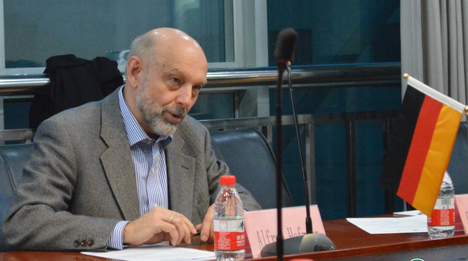Alfred Hofmann先生的学术报告题目是“计算机科学思考”。他首先从计算机科学的选题谈起,透过施普林格、爱思唯尔(Elsevier)等国际一流出版公司对学术专著、学术期刊、学术会议论文集、教材等学术成果的出版数据,分析了国际研究和应用的趋势,重点讨论了软件工程、计算机科学、人工智能等领域的大数据、数据挖掘等课题,给出了科技创新发展的独特思考。然后,建议在座的师生面向挑战,努力钻研世界前沿的科学问题,在思考中进步,在进步中收获,用收获促进人类社会的可持续发展。最后,他表示,尽管施普林格选题严苛,但是整个公司对好的学术成果仍然求贤若渴,他因为《空间数据挖掘理论与应用》的专程到来,就表明了公司的诚挚和自己内心的喜悦。
