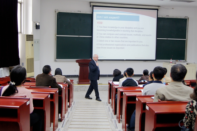 2015年4月24日下午,由教学促进与教师发展中心和国际交流合作处联合主办的北理工教师发展第124期活动在中心教学楼407举行。主讲人Keith J, Roberts博士是匹兹堡大学教育国际研究学院高级研究员,并任TotalEdit.com公司副主席。Roberts博士先后做了题为“Academic Writing: Publish to Flourish”和“The Importance of Academic Publishing”的报告,国际交流合作处副处长高珊主持了本次活动,来自我校管理学院、机电学院、材料学院、外国语学院、数学学院、生命学院等院系的近20名师生参与了活动。