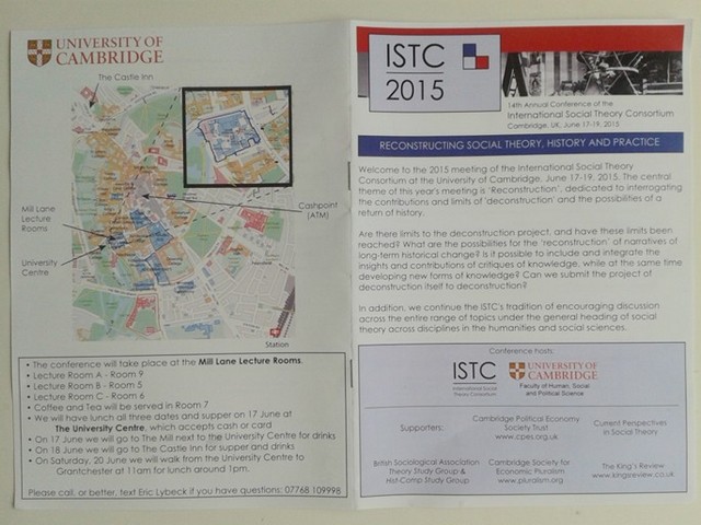 编辑:人文学院 于满 阅读次数:国际社会理论联盟第14届年会(14th Annual Conference of the International Social Theory Consortium)于2015年6月17日至19日在英国剑桥大学米尔街演讲厅举行,北京成品人和一品二品的区别人文学院陈宗海教授作为与会代表参加此次大会并发言。