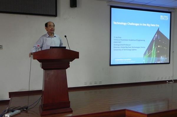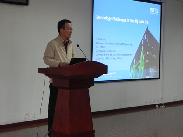 编辑:信息学院 范哲意 阅读次数:应信息与电子学院邀请,澳大利亚悉尼科技大学终身教授、澳大利亚工程院院士、IEEE&IET Fellow Yingjie Jay Guo(郭英杰)教授于近期在我校访问交流,并于2015年10月7日在信息科学实验楼202报告厅开展了“21世纪学科前沿”学术交流活动,作了题为“Technology Challenges in the Big Data Era”的学术报告。报告会由信息与电子学院龙腾院长主持,出席报告会的有信息与电子学院的教师、本科生及研究生等共60余人。