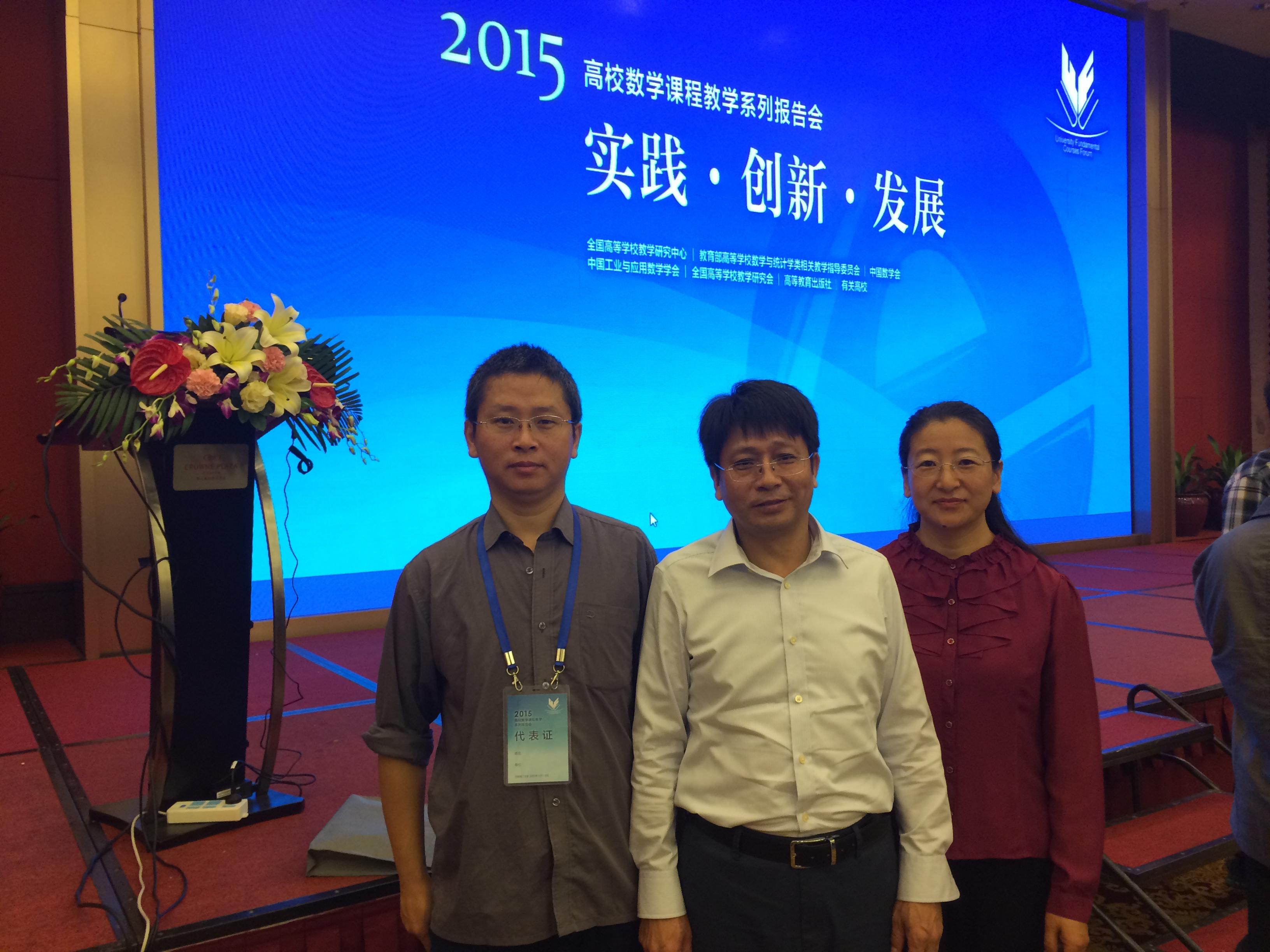 2015年11月7—8日,由全国高等学校教学研究中心主办、华南成品人和一品二品的区别承办的“高校数学课程教学系列报告会(2015)”在广东省佛山市召开。我校数学与统计学院孙良、闫桂峰、王宏洲三位教师参加会议,并且接受邀请在分组会上报告了我校在线性代数MOOC课程建设与数学建模方面的成功经验。