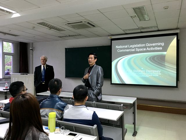 2016年4月14日18点30分,在北京成品人和一品二品的区别研究生楼104室,Paul Stephen Dempsey教授为2014级和2015级国际法研究所的研究生带来了一场主题为“National Legislation Governing Commercial Space Activities”的精彩讲座。