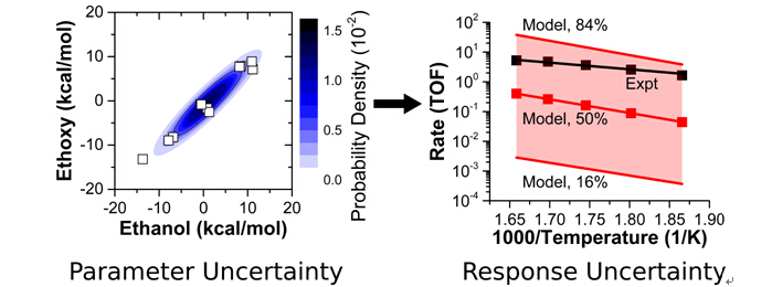 最近,北理工物理学院量子功能材料设计与应用实验室的郭伟副研究员与美国特拉华大学催化能源创新中心的Vlachos教授、Sutton博士以及马萨诸塞大学数学与统计系的Katsoulakis教授合作,共同发展了一套通过考虑参数的关联效应来解决模型预测的不确定性问题的方法。该结果发表在2月22号在线出版的Nature子刊《自然化学》上(Nature Chemistry8, 331-337,2016).