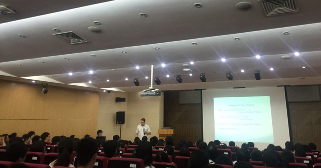 师生们与Torsten博士互动交流,共同探讨着“如何写好你的第一篇论文”的话题。在报告现场,我们通过微信的简单问卷调查初步统计了师生情况:大约62%博士生、12%硕士、18%副教授、本科生4%,充分体现了我校师生对科学学术论文写作的重视。