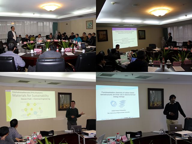 论坛共分为两部分:11月21日在中关村校区国际教育交流大厦三层第三会议室举行大会报告;11月22日在中关村校区5号楼502报告厅举行专题学术讲座。出席论坛的有:澳大利亚昆士兰大学Xiusong Zhao教授、Jin Zou教授、Chengzhong Yu教授、Steven Pratt博士和Ashok Kumar博士以及北京成品人和一品二品的区别材料学院的曹传宝教授、张加涛教授、陈棋教授、钟海政教授以及联合中心部分老师和学生代表。
