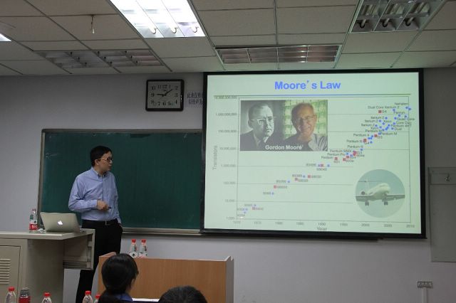 段镶锋教授首先从半导体技术的发展出发指出技术革新对材料性能的特殊要求,提出二维材料的一些优异性能可弥补目前主流硅材料的瓶颈。随后以石墨烯和二硫化钼材料为例,提出了通过范德华作用力对材料进行有效集成的概念,介绍了近年来其课题组在该研究领域的一些极富创新性的研究工作。同时段教授也介绍了课题组在新型纳米器件结构设计、二维材料在光电纳米器件中的应用等方面做的创新成果。整个报告过程中,段教授逻辑严谨,深入浅出的讲解了他们在这一领域的研究思路和成果。