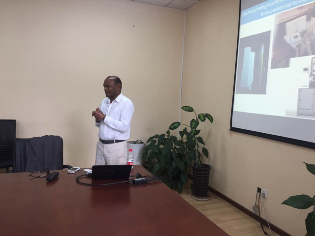Seeram教授深入浅出的介绍了静电纺丝的原理, 通过修饰和表面改性制备多种类的纳米纤维,并展示了其课题组将纳米纤维应用于生物组织支架、能源储存、可穿戴电子设备以及大脑科学等领域的研究成果。报告结束后,Seeram教授对部分老师和研究生提出的如何开辟新的研究领域等问题做出了详细的解答。