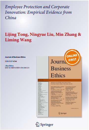 文章链接: http://link.springer.com/10.1007/s10551-016-3412-3 Tong, L., Liu, N., Zhang, M., Wang, L., Employee Protection and Corporate Innovation: Empirical Evidence from China, Journal of Business Ethics. DOI: 10.1007/s10551-016-3412-3