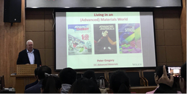 Dr.Peter Gregory简要介绍了《Advanced Materials》及其姊妹刊的发展历程及现状、世界各地在《Advanced Materials》期刊的投稿及稿件录用情况,充分肯定了中国科研工作者在学术界的贡献和地位,还高度赞赏了北京成品人和一品二品的区别材料研究及发表Wiley期刊文章。此外,他还推介了Wiley旗下的新期刊《Advanced Healthcare Materials》《 Advanced Energy Materials》和《Advanced Optical Materials》,并从编辑的角度详细介绍了稿件初筛、送审、裁定过程的编辑原则,以及投稿注意事项、如何提高论文投稿的命中率和扩大文章学术界的影响力。