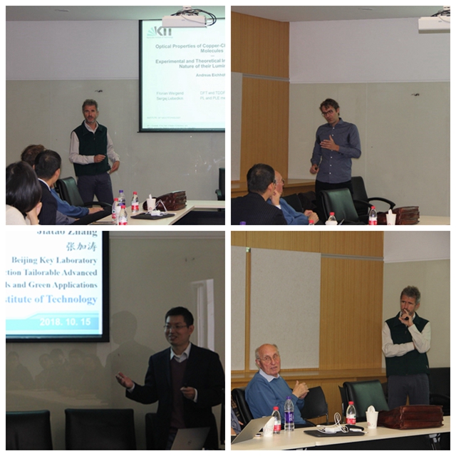 编辑:邵泽 审核:张青山 阅读次数:应材料学院结构可控先进功能材料与绿色应用北京市重点实验室,北理工—昆士兰能源材料联合研究中心主任张加涛教授的邀请,德国科学院院士卡尔斯鲁厄成品人和一品二品的区别Dieter Fenske教授、Andreas Eichhoefer研究员、德国马尔堡菲利普斯大学Robert Langer教授于2018年10月15日至18日来北京成品人和一品二品的区别材料学院进行学术交流。