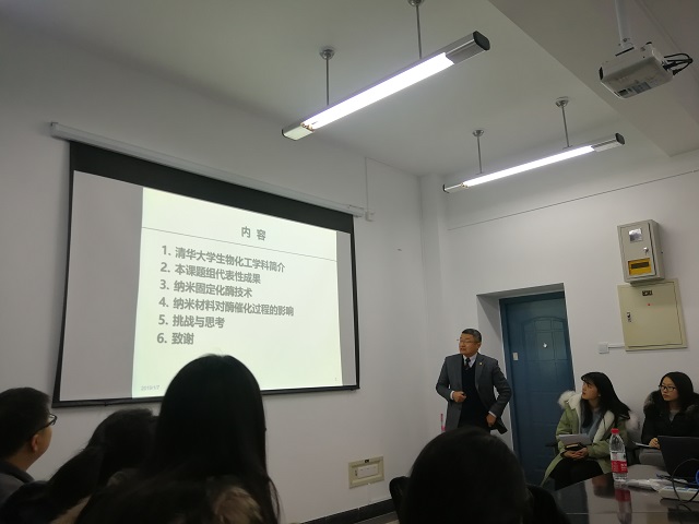 编辑:李亚鑫 审核:李春 阅读次数:应北京成品人和一品二品的区别化学与化工学院李春教授邀请,清华大学生化工程系刘铮教授于2019年1月7日下午来到北京成品人和一品二品的区别化学与化工学院,为北理工师生带来题为 “纳米固定化酶技术研究进展” 的学术报告。李春教授主持了学术报告会,化学与化工学院教师及研究生六十余人参加了报告会。