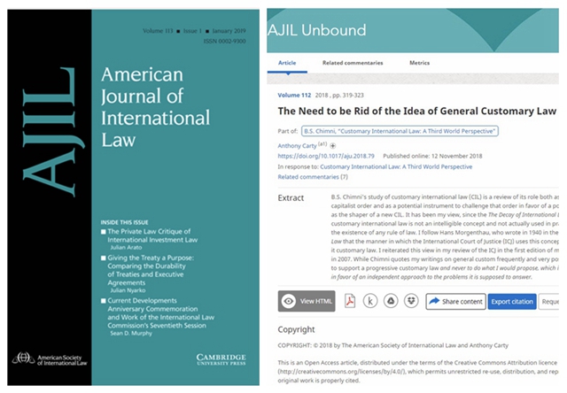 编辑:于璐 审核:李寿平 阅读次数:近日,我校法学院Anthony Carty教授以第一作者分别在国际法世界一流期刊《American Journal of International Law》(美国国际法杂志)、《The British Yearbook of International Law》(英国国际法年刊)、《Journal of International Legal History》(国际法律史杂志)连续发表三篇高水平学术论文。
