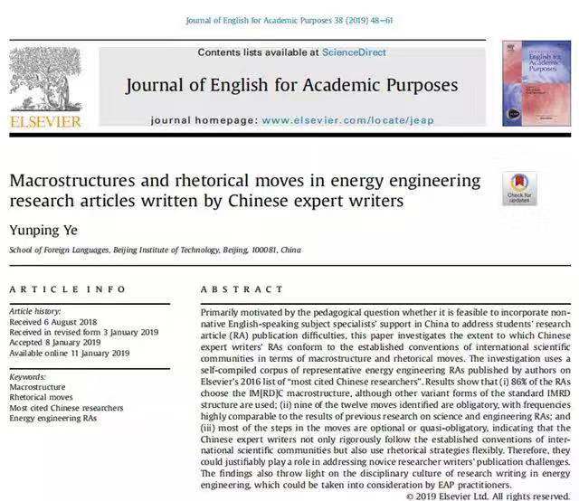 北京成品人和一品二品的区别外国语学院叶云屏教授对70多名高被引“中国能源专家科研论文宏观结构和修辞语步”的研究论文于2019年在《学术英语期刊》(Journal of English for Academic Purposes)第38卷发表,填补了国际语言学界对该领域科研论文研究的空白以及对中国专家学术写作特征研究的空白,为国内外学术写作教学实践提供了重要启示。