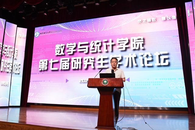 蒋立宁教授致开幕词。蒋立宁教授强调了学院开展学术论坛的意义,不仅给广大数学与统计学院的研究生提供一个高水平的学术交流平台,拓宽研究生的学术视野,活跃学术思想,更能促进学术争鸣,激励学术创新。