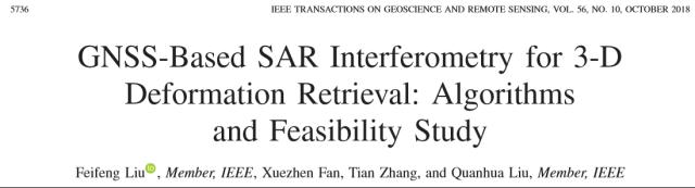 编辑:曹安琪 审核:薛正辉 阅读次数:北理工信息与电子学院毛二可院士、龙腾教授创新团队的最新研究成果《基于导航卫星的干涉合成孔径雷达三维形变反演:算法与可行性研究》(GNSS-Based SAR Interferometry for 3-D Deformation Retrieval: Algorithms and Feasibility Study),发表于本领域国际顶级期刊《IEEE Transactions on Geoscience and Remote Sensing》(IEEETGRS)上。本文的第一作者为北理工信息与电子学院刘飞峰副教授,通讯作者为刘泉华副教授。