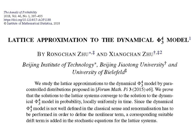 动力模型,取得了一系列的研究成果。相关结果发表在国际数学一流期刊《The annals of probability》《Journal of differential equations》等上。这些结果多次被Hairer、Gubinelli等数学家引用。