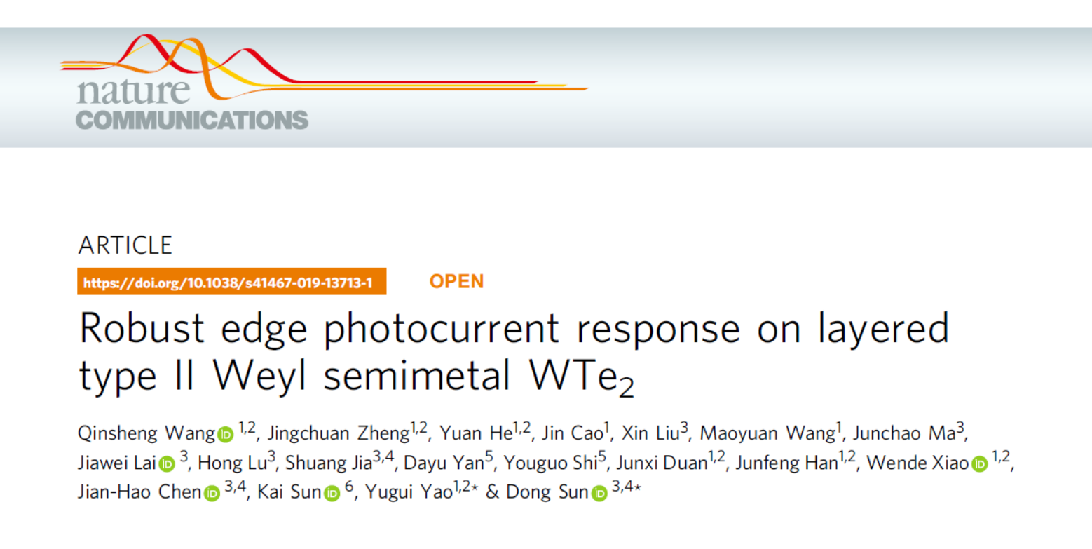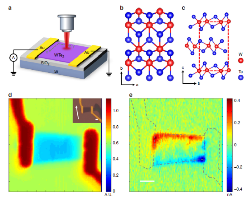 编辑:周格羽 审核:姚裕贵 阅读次数:近日,北京成品人和一品二品的区别物理学院姚裕贵教授、王钦生特别副研究员及团队成员,同北京大学量子材料中心孙栋研究员等合作者,在第二类外尔半金属材料WTe2光电响应研究方面取得重要进展。他们利用扫描光电流谱方法对第二类外尔半金属材料WTe2光电响应进行了系统的研究,发现在该材料边界处具有反常的光电流响应(图1),并且边界对称性的高低决定了该反常光电流响应的有无。该工作提出了利用材料低对称性边界的晶体场作为光生电子-空穴对分离的有效手段,并讨论了拓扑边缘态对于光电响应的可能影响,为拓扑半金属材料在光电探测等方面的应用提供了新的思路。相关成果最近发表在Nature Communications上。