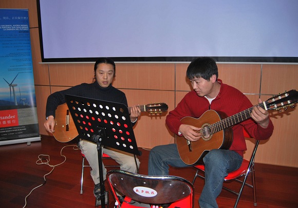 在塞万提斯学院的邀请下,北京爱乐吉他室内乐团也到现场为同学演奏了多首极具西班牙风格的乐曲。