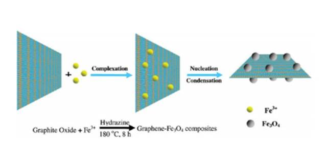 经此方法制备的GN-Fe3O4纳米复合材料展现出良好的循环稳定性,可作为高性能锂离子电池潜在的负极材料。此外,这种复合材料具有超顺磁性,这使得该材料在纳米生物技术的靶向给药领域有较好的应用前景。