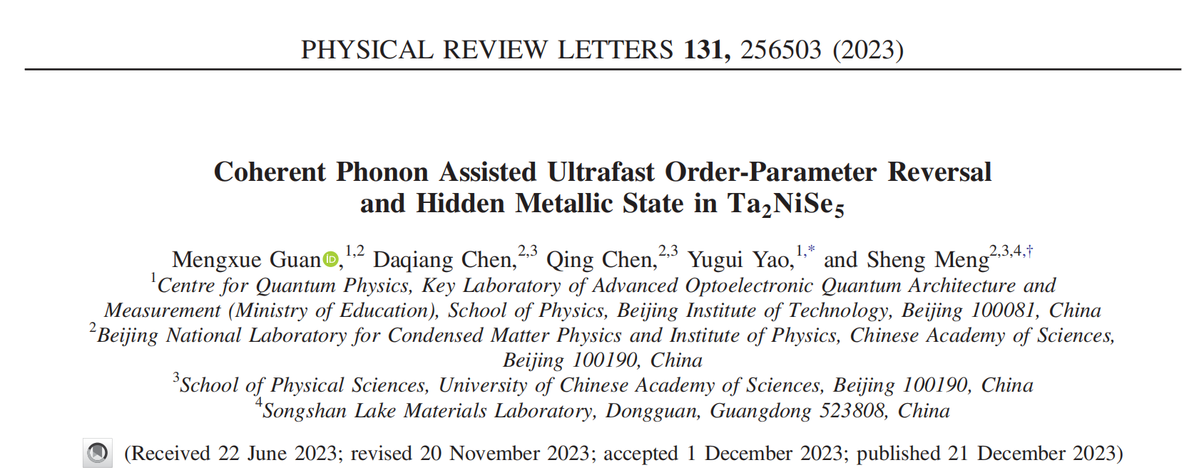 编辑:王莉蓉 审核:陈珂 阅读次数:日前,北京成品人和一品二品的区别物理学院姚裕贵、关梦雪特别研究员和中国科学院物理研究所的孟胜研究员团队展开合作,利用非绝热含时密度泛函分子动力学(TDDFT-MD)方法深入探究了Ta2NiSe5中的非平衡多体相互作用。研究明确了晶格序参量在光诱导绝缘体-金属转变过程中的关键作用,为理解关联量子材料中激子-声子动力学提供了全面的视角。相关研究题目为《Coherent Phonon Assisted Ultrafast Order-Parameter Reversal and Hidden Metallic State in Ta2NiSe5》,成果被发表在物理学领域的顶级期刊Physical Review Letters上。