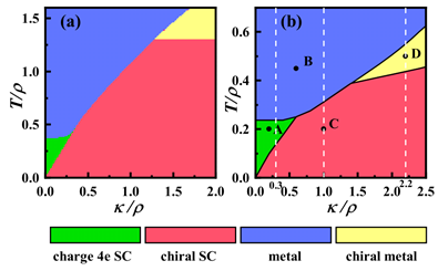编辑:王莉蓉 审核:陈珂 阅读次数:自从1911年荷兰物理学家昂内斯发现超导的一百多年来,超导现象一直引起经久不衰的关注。1957年,美国物理学家Bardeen、Cooper、Shrieffer提出所谓BCS理论来解释超导的物理起因,即,电子之间通过交换晶格振动的能量量子(即声子)来产生有效吸引力,进而形成库伯配对。一对库伯对整体上可以看作是玻色子。材料中大量的库伯对玻色子形成玻色-爱因斯坦凝聚而产生的宏观量子态就是超导。BCS理论提出之后的半个多世纪以来一直都是超导领域的金科玉律而被广泛遵循。然而,是否存在超越BCS理论的超导态?特别是,是否存在四个电子形成束缚态玻色子,然后经历玻色-爱因斯坦凝聚而形成超导,即四倍电荷超导态,的可能性? 2009年,斯坦福大学Steven Kivelson教授团队提出配对密度波基态在升温后部分热熔化而形成四倍电荷超导的理论。之后,麻省理工学院付亮教授团队和清华大学姚宏教授团队提出液晶相超导的部分热熔化可以产生四倍电荷超导。然而,所有这些产生四倍电荷超导相都没有被实验观测到,其原因在于材料实现方面的困难。因而,如何找到容易被材料实现的产生四倍电荷超导的机制一直以来都是该领域关注的焦点。