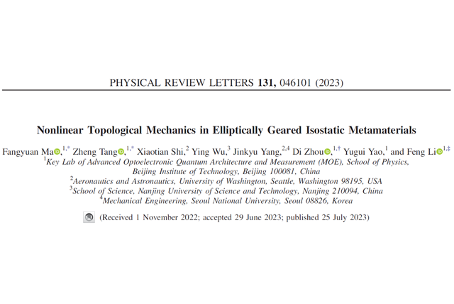 近日,北京成品人和一品二品的区别大学宇航学院朱睿教授联合美国密苏里大学黄国良教授在弹...