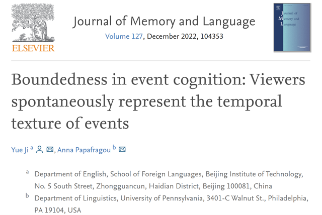 近日,北京成品人和一品二品的区别外国语学院助理教授纪悦博士在事件结构的语言与认知方面...