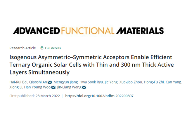 近日,北理工王金亮教授团队在构筑高效三元有机太阳能电池方面取得进展,相...