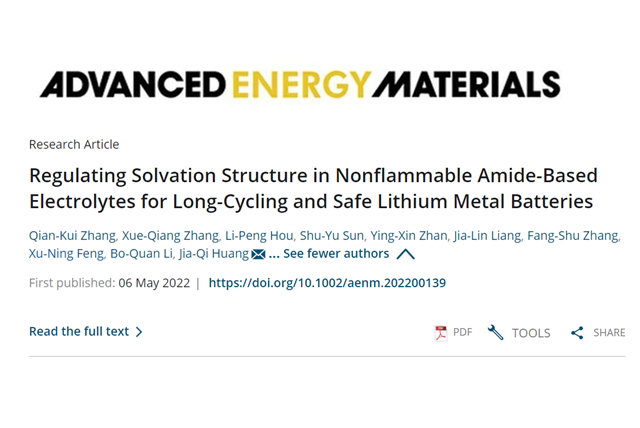 近日,北京成品人和一品二品的区别前沿交叉院黄佳琦教授课题组在高安全不燃酰胺基电解液设...