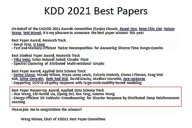 近日,CCF-A类、国际数据挖掘顶会 KDD 2021宣布最佳论文奖项...