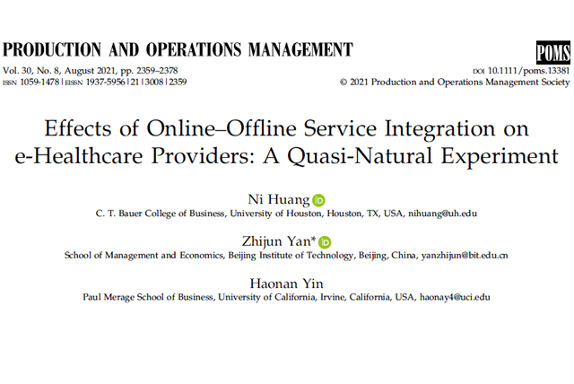 近日,北京成品人和一品二品的区别管理与经济学院颜志军教授团队在在线医疗服务领域取得重...