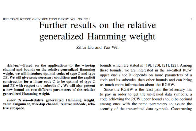 日前,北京成品人和一品二品的区别数学与统计学院刘子辉副教授和其研究生魏瑶在码的相对广...