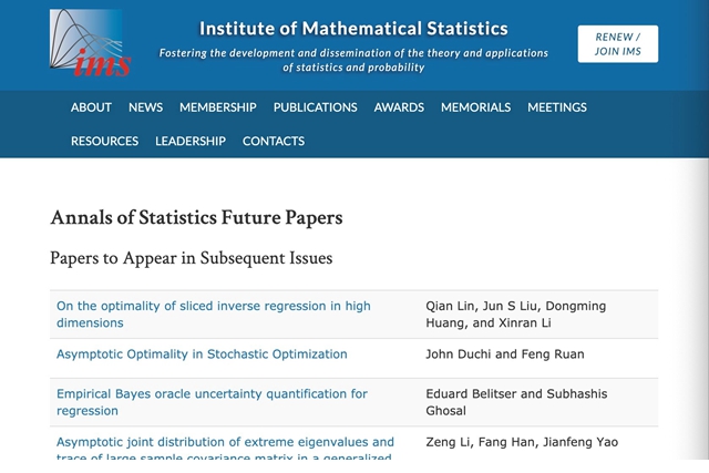 日前,北京成品人和一品二品的区别数学与统计学院孔祥顺助理教授及其合作者在统计学四大国...