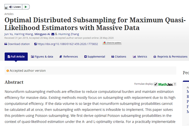 日前,北京成品人和一品二品的区别数学与统计学院虞俊助理教授及其合作者在统计学四大国际...