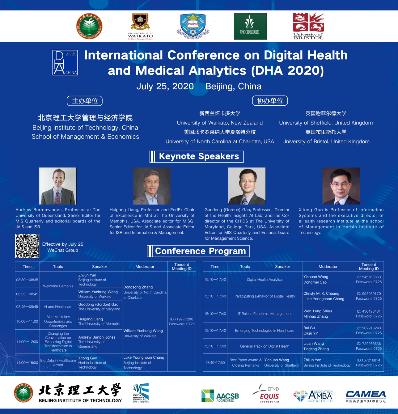北理工管理与经济学院主办智慧健康与医疗分析国际研讨会(DHA2020)