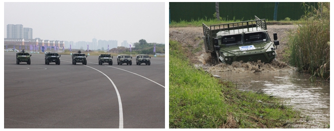 会议期间,在襄阳达安汽车检测中心,以东风越野车猛士为主的车型分别做了列队行驶、追截击、涉水、多种障碍通过性等动态演示,精彩的表演得到了与会代表的热切关注和热烈掌声。大会还设置了特种车辆与防务技术展览,展出了多种新型车辆与关键零部件技术。