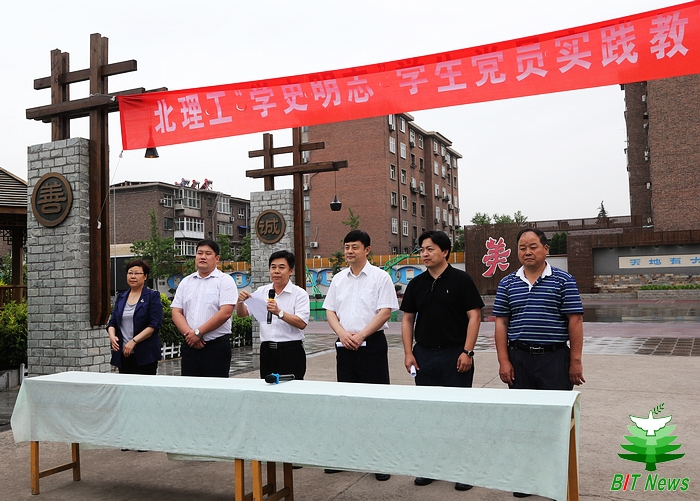 5月31日,北理工学生党员骨干60余人在党委学生工作部的组织下,赴河北井陉矿区开展“学史明志”实践活动。在学校前身华北大学工学院旧址所在地,现在的井陉矿区第一小学,实践团受到井陉矿区政府及矿区一小师生的热烈欢迎,矿区区委副书记、政府区长栾建英,北理工学工处副处长马晓宁参加欢迎仪式,矿区政府副区长李树国主持了仪式。
