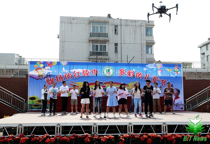 6月1日上午,实践团集体参加了矿区一小庆六一“飘扬的红领巾,多彩的儿童节”主题联欢会活动。活动开始前,矿区区委书记张旭亲切接见了北理工师生。活动中,实践团欣赏了矿区一小的小朋友们表演的合唱、舞蹈、武术、空竹、朗诵等节目,也精心准备了歌舞串烧《歌舞青春》和以井陉广为人知的日本战争遗孤美穗子的故事为原型改编的舞台音乐剧两个节目;特别是由我校航模队成员展示的飞行器表演,更是深受小朋友们喜爱。