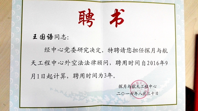 北理工教师受聘国防科工局探月与航天工程中心法律顾问