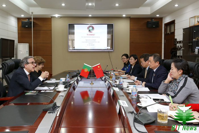 Azevedo校长也详细介绍了波尔图大学的办学规模、学科分布、留学生情况、科研与企业合作研究所等情况,他非常重视同北理工的合作,两校在国际排名和办学规模方面相仿,在学科设置方面互补,有很大的深入合作潜力,希望以能和我校在工程和理科等领域有更深入的合作。Marinho副校长也对前来北理工交换学习的六名波尔图大学学生学习和生活情况表示肯定,并介绍了波尔图大学可接收国际学生的本科和研究生专业。双方还就留学生申请、录取以及奖学金等事宜进行了沟通。
