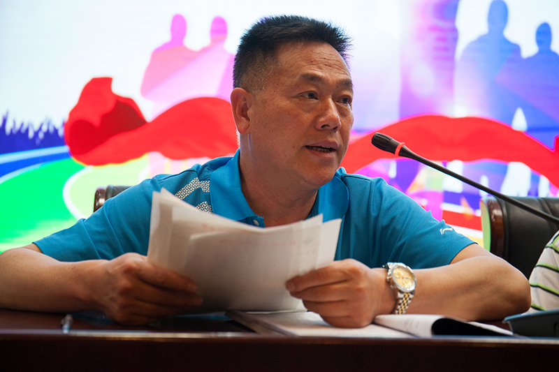 北京市大学生体育协会田径分会秘书长刘玉友首先表示了对北理工赛事筹备工作的肯定和赞扬,其次向全体领队强调了对运动员注册、检录的要求。