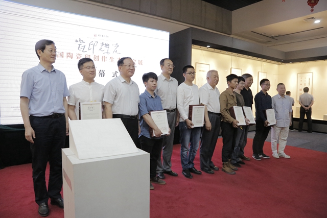 展览通过“文献考察”与“作品展览”两部分将陶瓷印的历史和当代发展进行了梳理。“作品展览”通过特邀和征稿的方式展出108位艺术家的200余件陶瓷印的印章原作,另每位作者还在印屏上展示了3至10幅印蜕作品。本次展出的“征稿作品”部分,是评委会对应征参选的作品进行了评选,评为获奖作者和参展作者两部分。李和章、王镛、陈国斌、毕开艾、崔晗、李长春在开幕式上为姜轶、谭玉祥、武拙园、王志国、徐明春、崔红涛等6名获奖者颁奖。