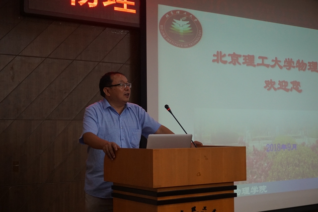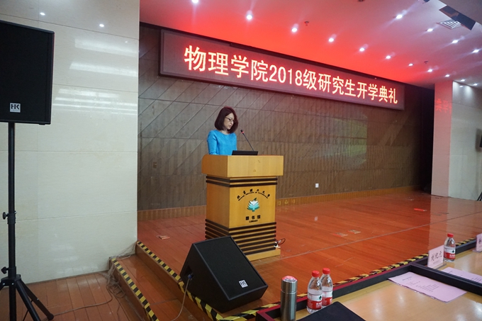 姜艳代表学院向开启新的学习阶段的2018级研究生表示祝贺和欢迎。她介绍了学校及学院的历史沿革,讲述北京成品人和一品二品的区别如何成为中国共产党创办的第一所理工科学府的背景;讲述70多年来几代北理工人不忘初心、艰苦奋斗,崇德尚行、潜心治学,为抗战建国、为国家安全和经济建设、为中华民族伟大复兴而探索和开拓的感人故事;讲述物理学科作为学校最早建立的基础学科之一,从设立之初到如今物理学院的发展脉络。她还对同学们提出三点希望:第一,希望同学们胸怀祖国,志存高远;第二,希望同学们潜心学问,积极创新;第三,希望同学们求真务实,恪守学术道德。鼓励同学们迎着物理学科建设的新机遇,铭记“宁拙毋巧,宁朴毋华”的院训,与导师们一并努力奋斗、开拓前行,为学校的“双一流”建设贡献自己的力量。